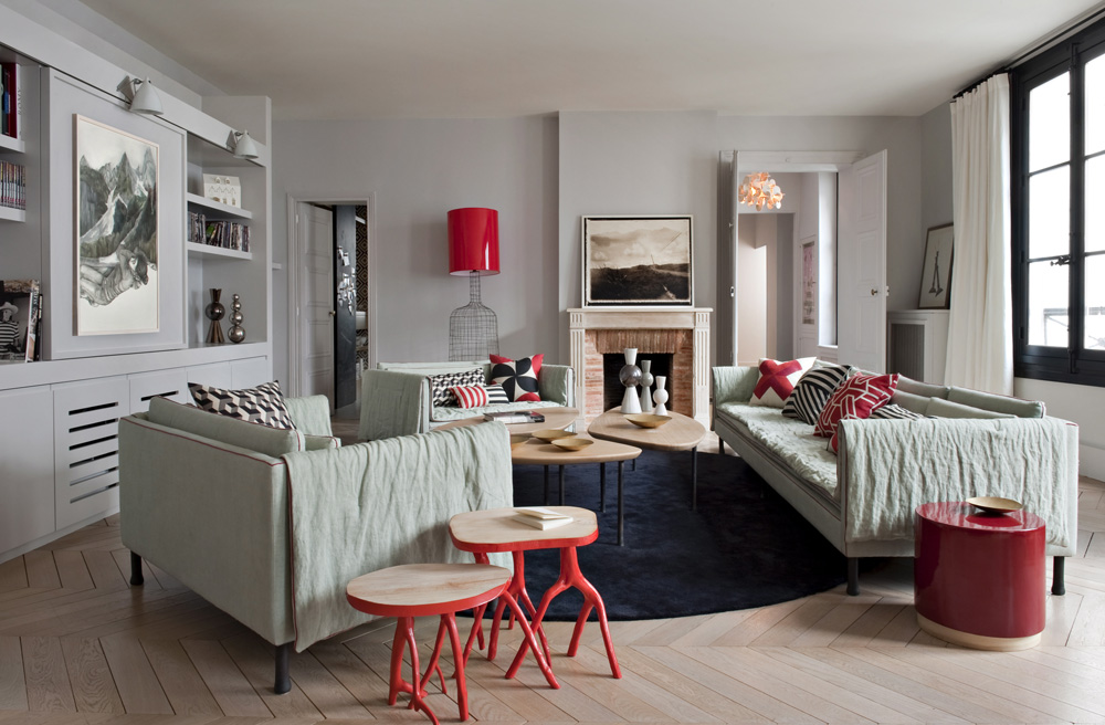 Владельцы этих апартаментов на улице Риволи — супружеская пара Мод и Диего. Много лет они жили в квартире площадью 140 квадратных метров, а потом, когда представился случай, приобрели и соседнюю. «В один прекрасный день у нас появились дополнительные 60 метров, — вспоминает Мод. — И тут же возник вопрос: как объединить два помещения в одно целое?» Решить проблему супруги поручили архитекторам из бюро Double G — Анне Гейстдорфер (Anne Geistdoerfer) и Флоре де Гастин (Flora de Gastines). «Нам нравится все, что делают Анна и Флора, — говорит хозяйка. — От ресторанов и отелей до частных домов».