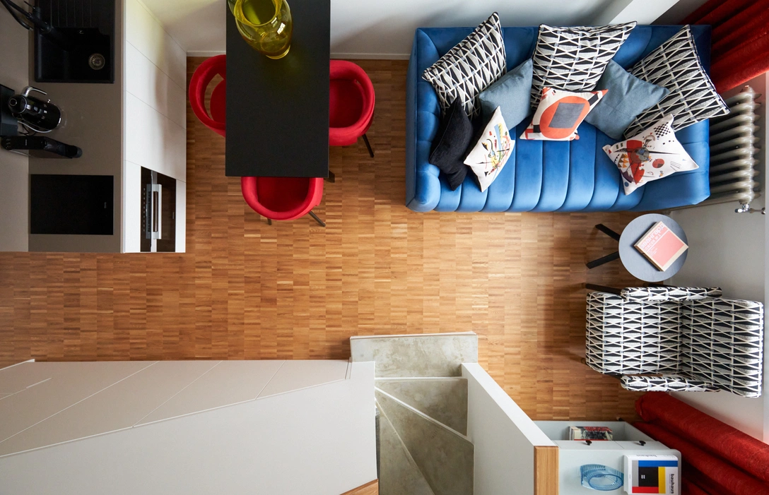 «Это современное прочтение эпохи конструктивизма и авангарда. Главным вдохновением при создании квартиры-ячейки F стали идеи школы ВХУТЕМАС и Баухауса»