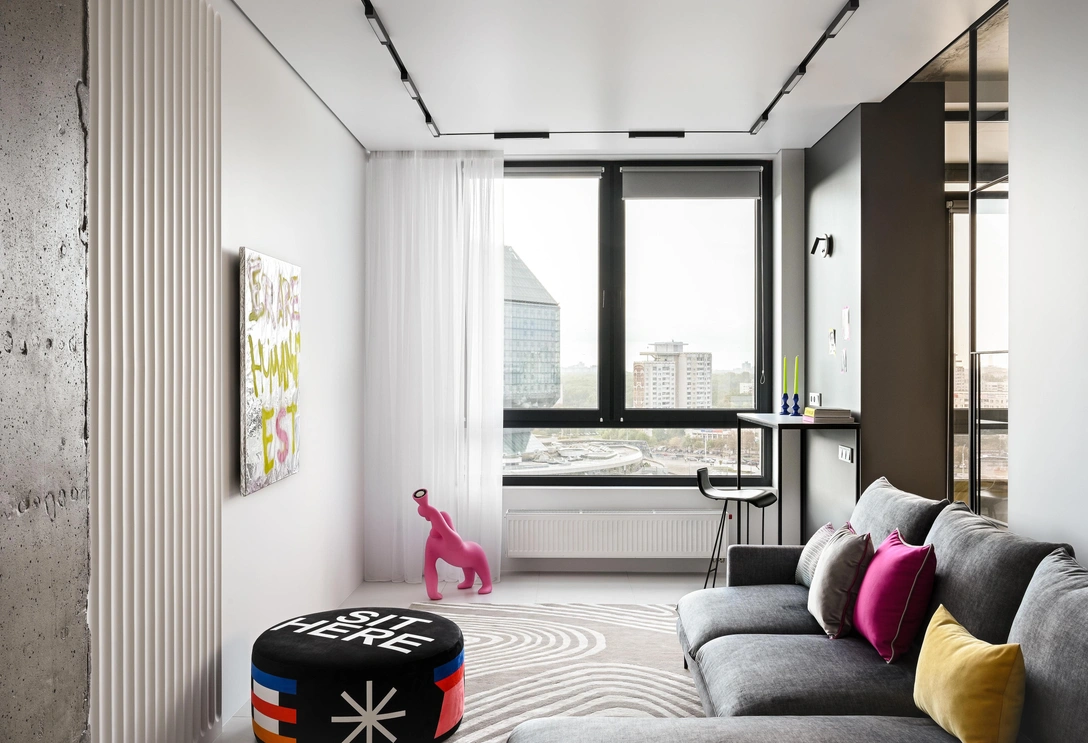 «Цвет в интерьер мы добавили с помощью предметов декора и ярких полотен белорусских молодых художников Сережи Савича и Андрея Пичушкина. Я их очень люблю и продвигаю в массы. Их работы многих есть и в моей домашней коллекции. На мой взгляд, интерьер без искусства всегда не завершенный и пустоватый».