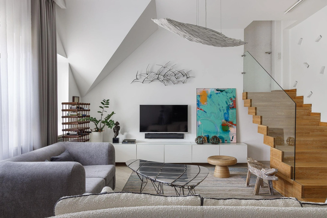 «Квартиру мы купили 10 лет назад, когда в нашей семье родился второй ребенок. Дом построен по индивидуальному проекту, и в квартире изначально было два уровня. Вместе с этим у нее был серьезный недостаток — протекала кровля. Но благодаря тому, что нам пришлось ее ремонтировать, мы смогли добавить второй ряд мансардных окон. Так, пространство стало светлее и визуально выше», — рассказывает Вера.