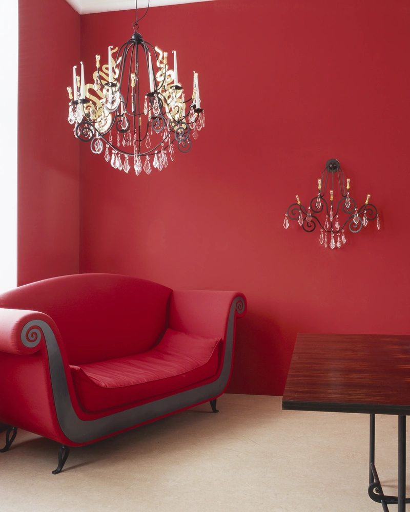 Оформляя примыкающие к гостиной помещения, Мароэска сыграла на контрасте: после строгого черно-белого интерьера вас буквально оглушает взрыв ярких красок. Имена комнат говорят сами за себя — «красный салон», «синяя спальня».