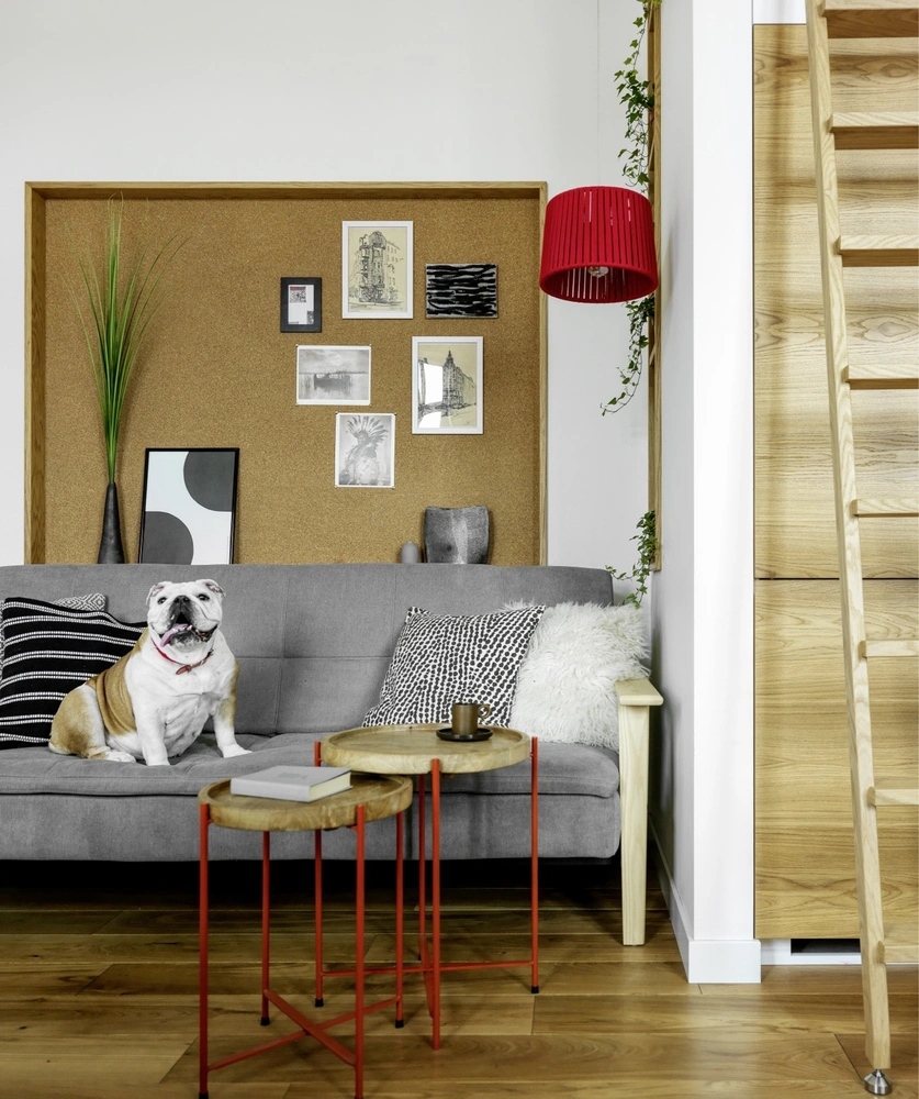 Заказчики — молодая семья с двумя детьми дошкольного возраста. Глава семьи работает в сфере IT, любит лонгбординг и яхтинг. Хозяйка в свободное время пишет акварели и играет на фортепиано — инструмент поставили в спальне, но при желании его легко спрятать за откатными дверями встроенных по бокам шкафов. В этом случае спальня преображается, обретая очень лаконичный вид, а все внимание приковывают к себе живописные цветы на фотообоях в изголовье кровати. Это самый яркий элемент интерьера, целиком построенного на натуральных оттенках дерева.