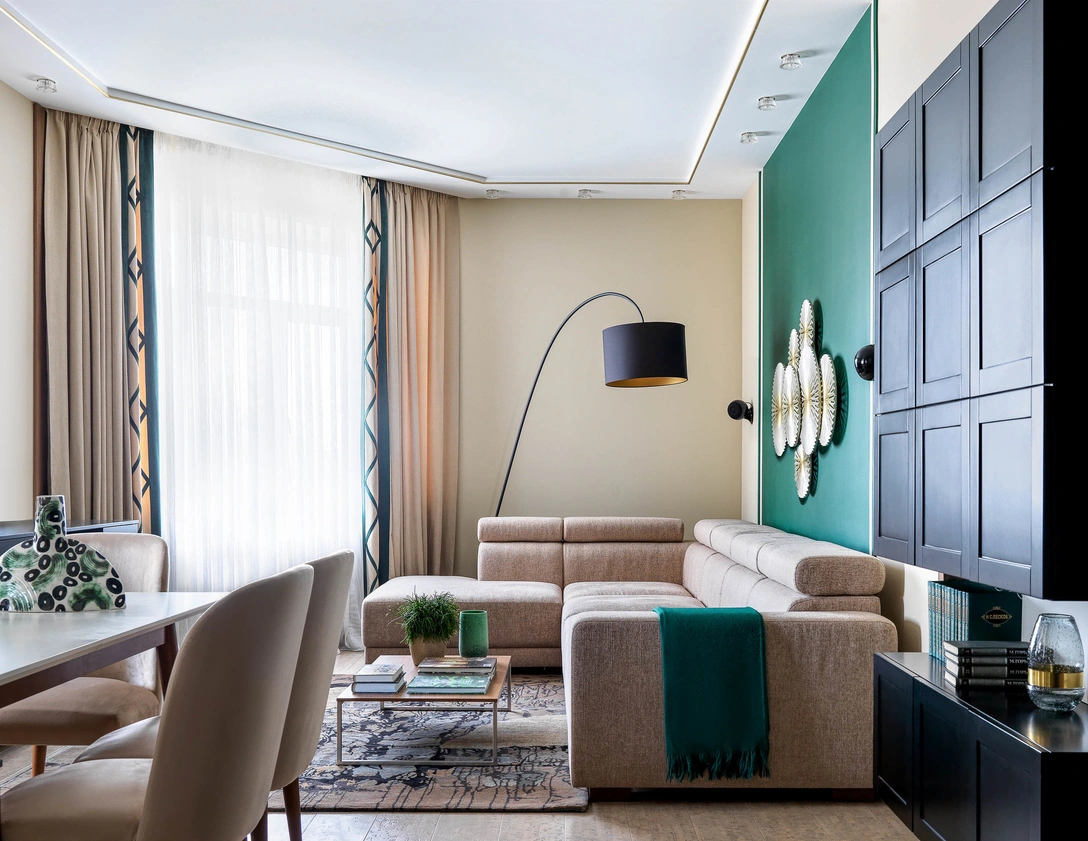 Цветовая гамма: нейтральная с изумрудными акцентами