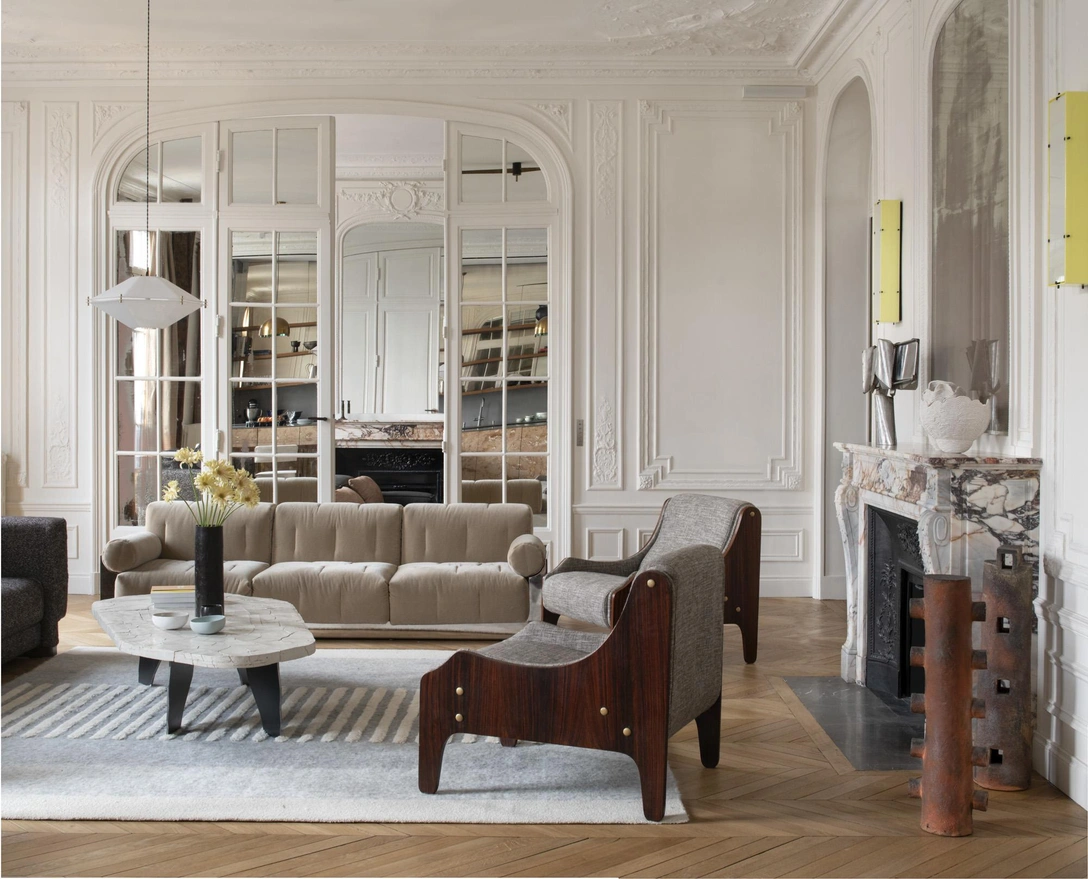 У французского дизайнера Сандры Бенаму (Sandra Benhamou) особый почерк: приглушенные цвета, натуральные материалы и любовь к контрастам. В ее проектах нет двух одинаковых комнат, и предметы декора никогда не повторяются — и на то есть веские причины. Она хорошо разбирается в искусстве и соединяет в интерьерах находки с блошиного рынка, предметы с антикварных аукционов и современную керамику из арт-галерей. Этот подход виден и в ее последней работе — квартире на пятом этаже османовского особняка, расположенного в центре Парижа.