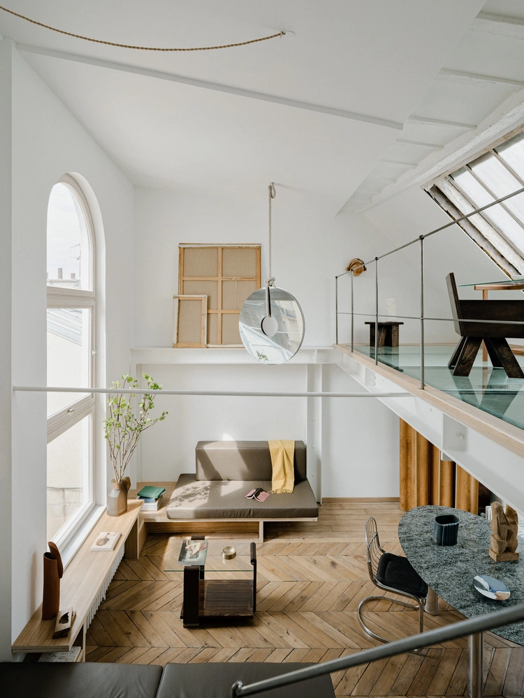 Дизайнер Луи Денаво (Louis Denavaut) работает над проектами разного формата: создает интерьеры частных домов, магазинов, офисов и квартир. Одну из них — двухэтажный лофт в Париже, расположившийся между садом Тюильри и Оперой Гарнье, — Денаво реконструировал по заказу двух художников. Дизайнер переосмыслил сравнительно небольшое пространство, черпая вдохновение в эстетике 1970-х, модернизме и ар-деко.