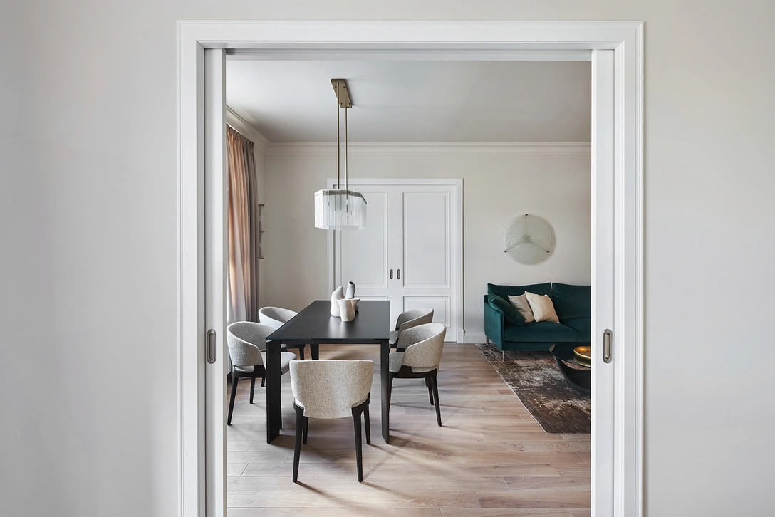 «Эту небольшую, но очень милую квартиру с идеальными прямоугольными пропорциями и тремя большими окнами по фасаду, взрослые дети заказали в качестве сюрприза для своей мамы, — говорит дизайнер Ирина Акименкова. — Дети живут за границей, и все согласования происходили удаленно. Мы виделись, кажется, один раз. И я практически все сделала на свой вкус».