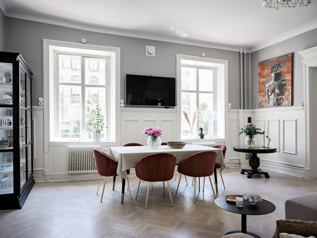 Владельцы этой просторной квартиры в Гетеборге — семья спортивного функционера с 10-летним сыном хоккеистом. Прежде чем приобрести квартиру в одном из самых престижных районов города, они долгое время жили за городом в местности Слоттскоген. Новая квартира находится от нее в транспортной доступности. Кроме того, недалеко расположен центральный вокзал города, что важно для часто путешествующего главы семьи.