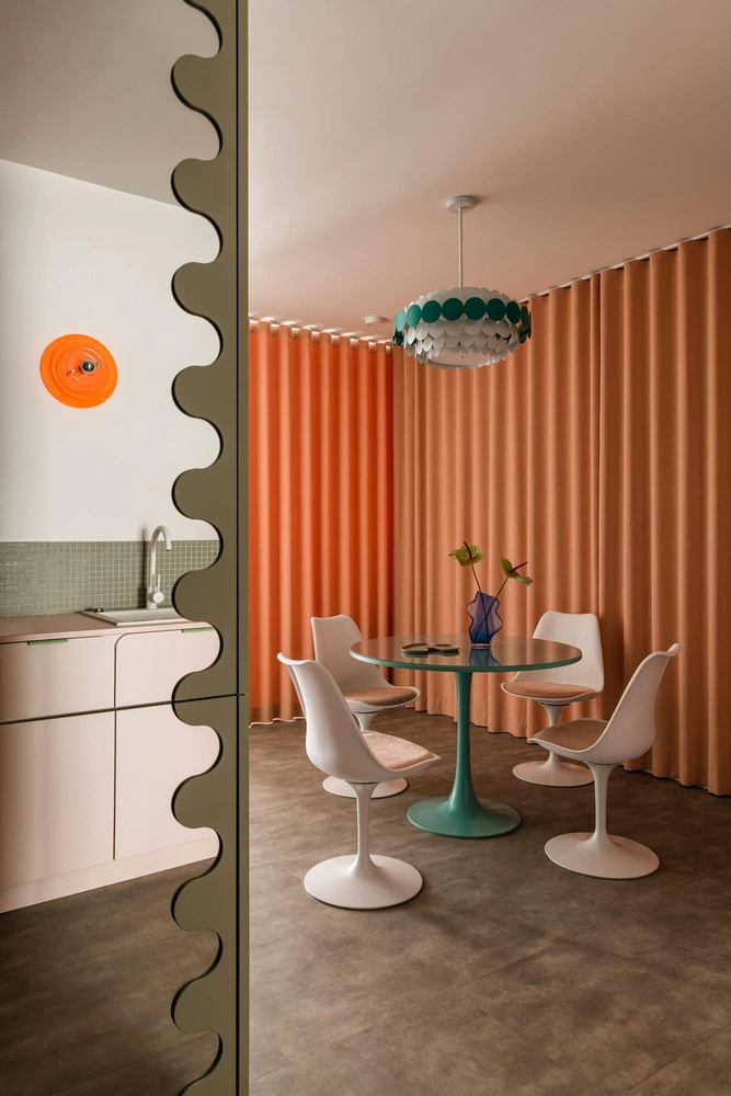 В интерьерах небольшой квартиры в центре Кракове дизайнеры Диана Журек (Diana Żurek) и Гутек Гирек (Gutek Girek) из студии Furora использовали цвета и формы, на которые согласится далеко не каждый заказчик. Владельцы этого жилья попросили спроектировать что-нибудь необычное, ведь квартира предназначена для сдачи в кратковременную аренду и должна выделяться на фоне потенциальных конкурентов.