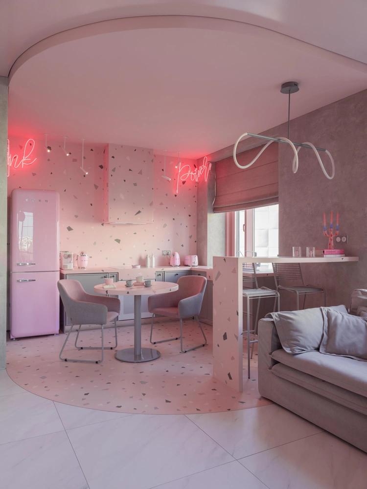 Основная идея проекта: создать интерьер, который будет отражать индивидуальность хозяйки, ее любовь к искусству и розовому цвету