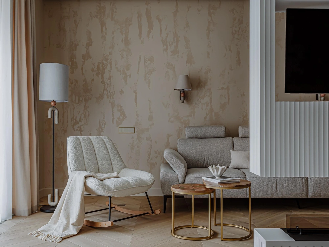 «Из недостатков пространства можно отметить длинный коридор, который нужно было как-то обыграть. Мы решили сделать окна из гостиной и санузлов, добавили акцентные бра, зеркала и выполненные на заказ парные картины. В итоге вместо темного узкого пространства, у нас получилась эффектная галерея».
