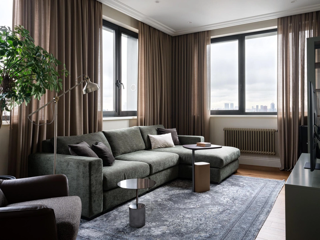 Заказчики — люди среднего возраста, хорошо разбирающиеся в моде. Долгое время они жили в съемной квартире с яркой мебелью, поэтому свой собственный интерьер они хотели сделать максимально спокойным, нейтральным, с минимальным количеством предметов. Единственное, чего должно было быть много — мест для хранения.