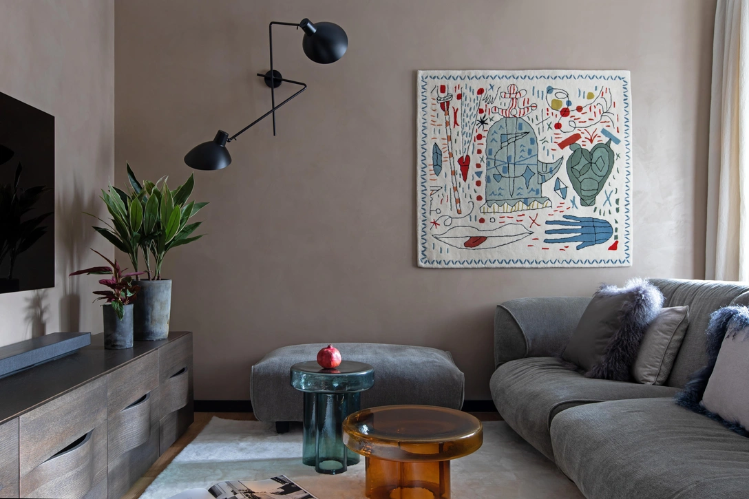 «Завершают облик интерьера необычные детали и мои любимые произведения искусства. Главным акцентом, пожалуй, является ковер с мифическими символами от дизайнера Хайме Айона (Jaime Hayon), который висит на стене в гостиной. Он всегда привлекает внимание гостей и был предметом долгой дискуссии в процессе создания интерьера».
