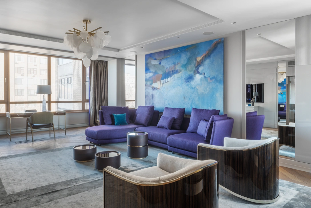 Квартира 160 м² расположена в «министерском» доме начала 1970-х годов, о статусе жильцов которого красноречиво свидетельствуют многочисленные мемориальные доски на фасаде. «Владельцы — новое поколение семьи, пригласили меня изменить старую атмосферу квартиры: добавить цвета, современного искусства, расширить пространство», — рассказывает архитектор Ольга Фрейман.
