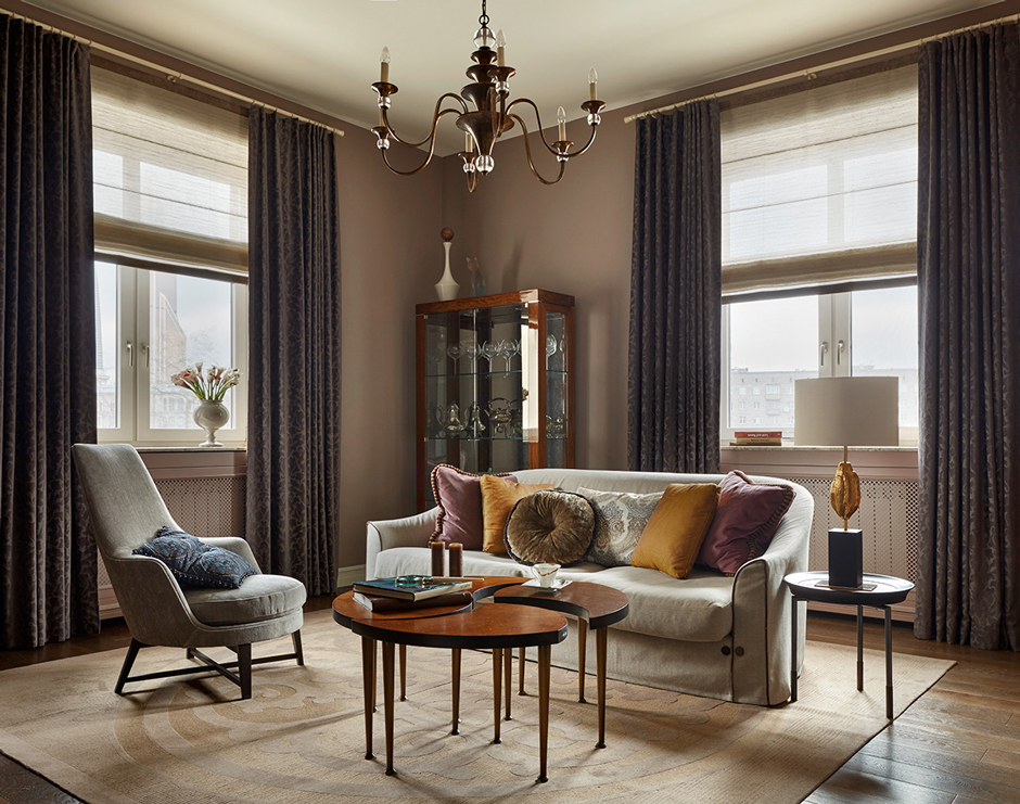Эта московская квартира, в интерьере которой современность переплетается с ностальгическими нотками прошлого, расположена в историческом здании послевоенного периода. Она досталась заказчикам по наследству, и, по словам декораторов, с 1949 года там практически ничего не менялось.