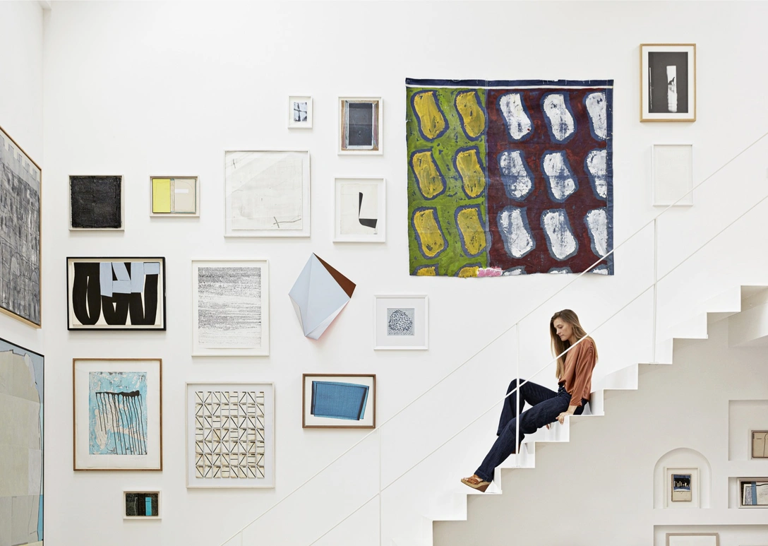Естественный свет подчеркивает скульптурные формы предметов коллекционного дизайна и выделяет множество произведений из собрания хозяйки — белоснежные стены дома полностью принадлежат работам современных художников, представленных в галерее Амели дю Шарлар. Для некоторых из них соорудили ниши под лаконичной металлической лестницей. «Чем больше искусства в пространстве, тем более минималистской должна быть архитектура. Нашей задачей было создать спокойное светлое пространство, мягкое и теплое. Поэтому здесь много природных материалов нейтральных оттенков, и даже такие фактуры, как кортеновская сталь или цемент, выглядят совсем не брутально», — говорит Ребекка Бенишу из Batiik Studio.