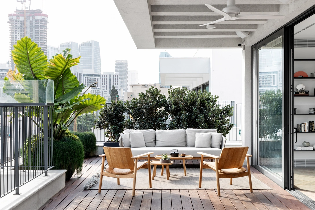 Хотя эта квартира находится на пятом этаже нового дома в самом центре Тель-Авива, ее владельцы чувствуют себя словно за городом. Две просторные террасы и высокие окна дают ощущение простора и воздуха, которое редко встретишь в городе.