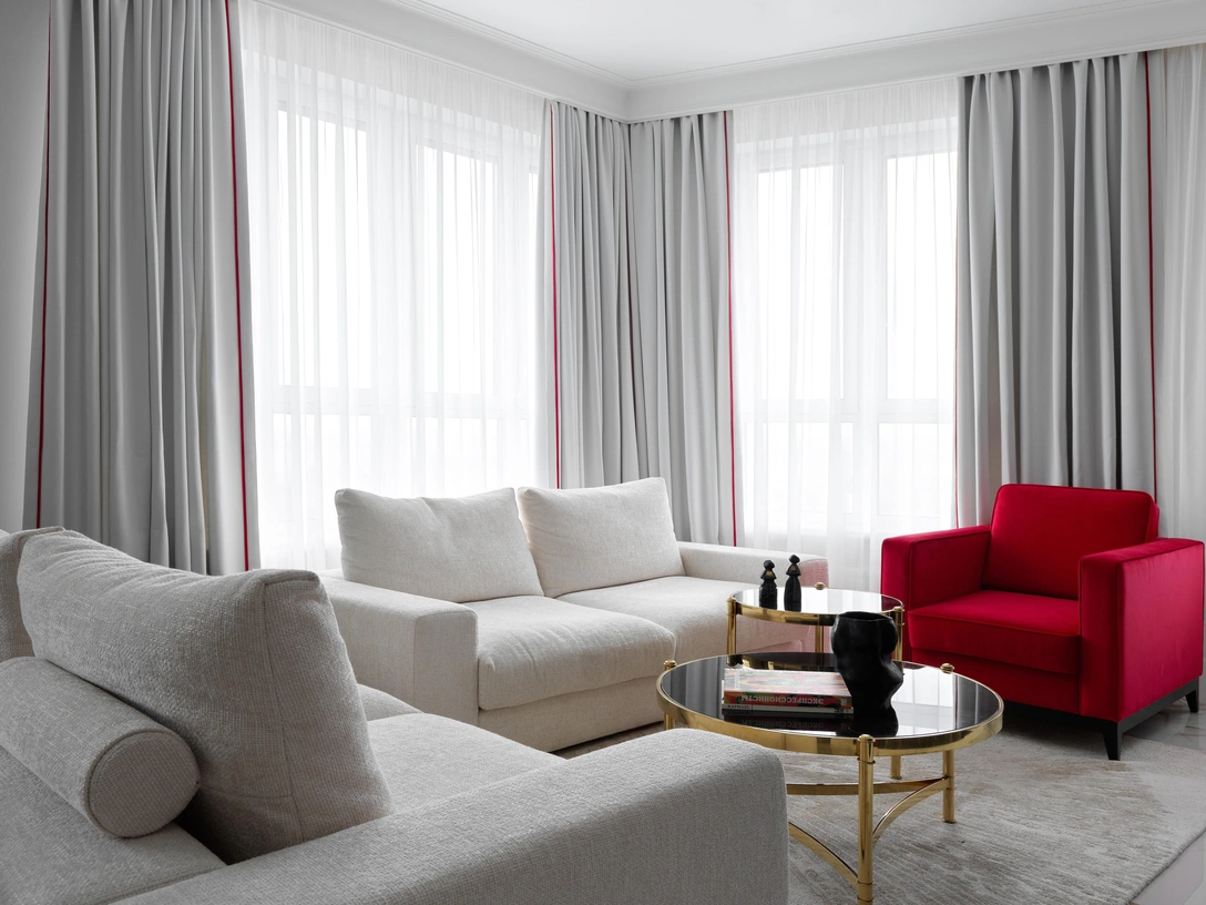 В этом проекте были соединены в одну квартиру однокомнатные и двухкомнатные апартаменты. Поэтому из нее открывается великолепный вид на три стороны. Дизайнеры долго ждали утверждения всех документов, но в итоге все разрешилось благополучно, и к стройке приступали уже «со спокойной совестью», что все разрешено и согласовано.