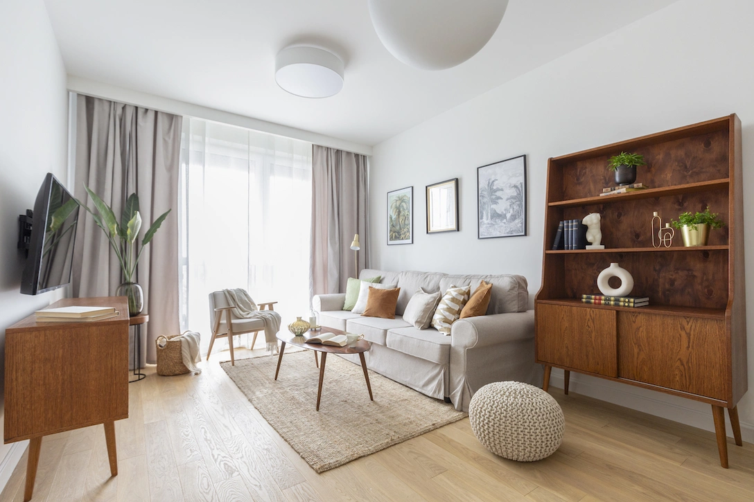 Среди тщательно подобранных предметов интерьера особое внимание привлекает отреставрированное кресло Джозефа Чировски (Józef Chierowski), расположившееся в гостиной, и знаменитое кресло Cesca по проекту Марселя Бройера (Marcel Breuer), стоящее в спальне.