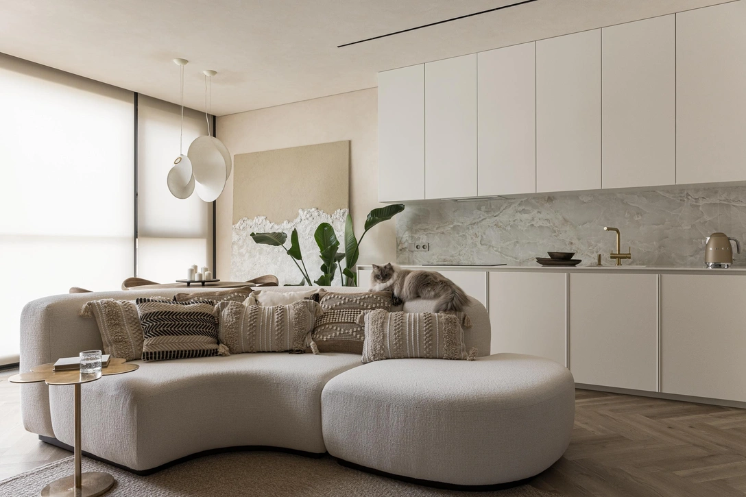 Интерьер создавался для пары, которая любит путешествовать, и именно их воспоминания о поездках легли в основу концепции. «Заказчики влюблены в минимализм и балийскую стилистику и мечтали о светлом пространстве без излишеств и ярких деталей. В итоге у нас получилось некое бунгало, но на домашний лад — более уютное и функциональное, — рассказывает автор проекта.
