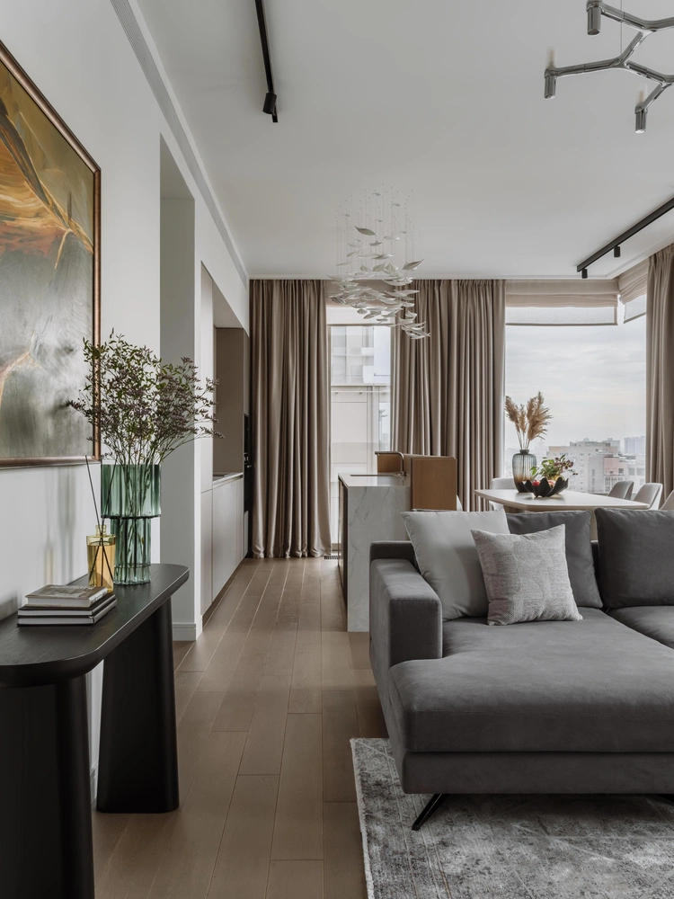 Хозяева квартиры — студенты, любят готовить и принимать гостей, много занимаются, поэтому им нужно было два рабочих кабинета, один из которых в будущем станет детской. Также они просили, чтобы пространство было функциональным, современным, в сдержанной цветовой гамме, с преобладанием в интерьере простых форм и природных материалов.