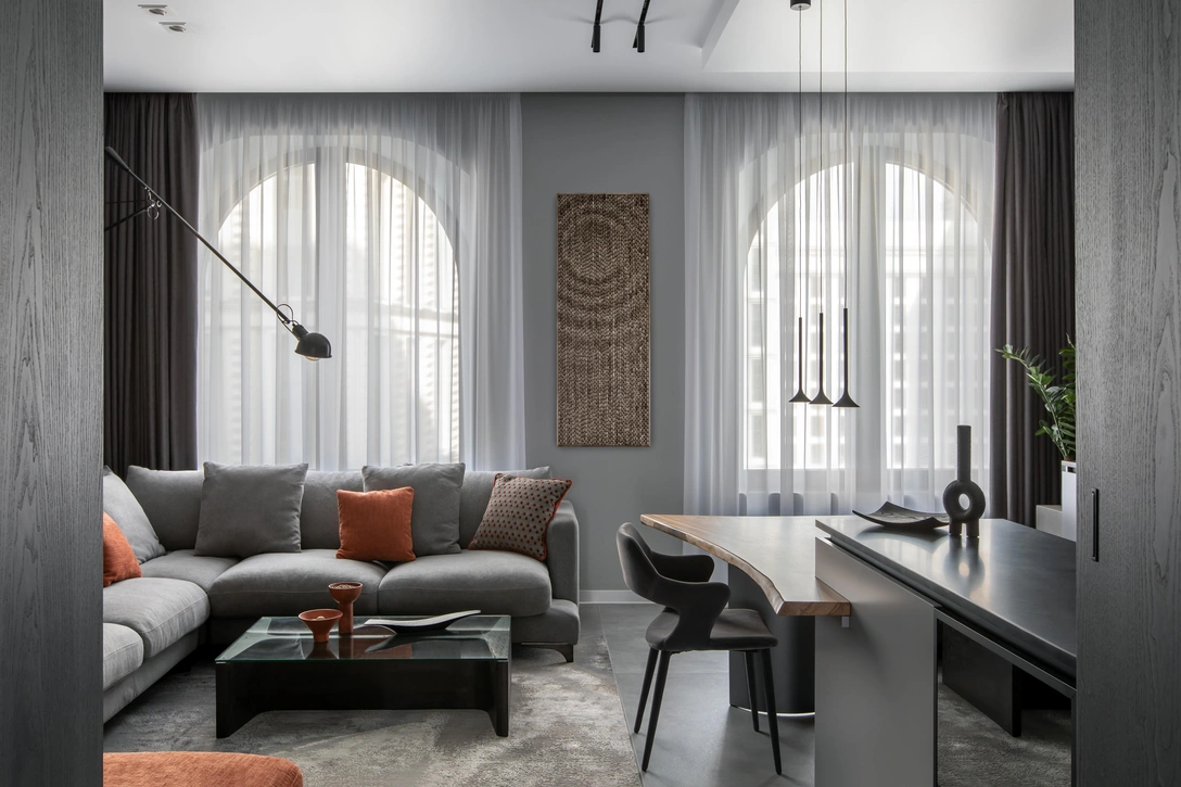 Основная идея проекта: показать, что мужской интерьер в серых тонах может быть уютным и комфортным
