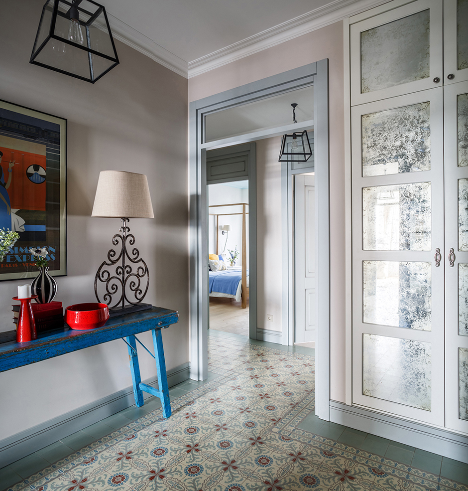 «Этот интерьер сложился буквально на одном дыхании и в атмосфере полного взаимопонимания, – рассказывает дизайнер Надя Зотова. – Владельцы квартиры хотели спокойный интерьер, дом для отдыха, наполненный светом и воздухом. Заказчики – фанаты Франции и Марокко, сразу сказали нам, что хотели бы видеть в будущем интерьере винтажные и антикварные предметы мебели и аксессуары. В итоге у нас получился светлый интерьер с нотками Франции и Марокко, наполненный вещами с историей, которые мы искали на антикварных рынках во Франции».