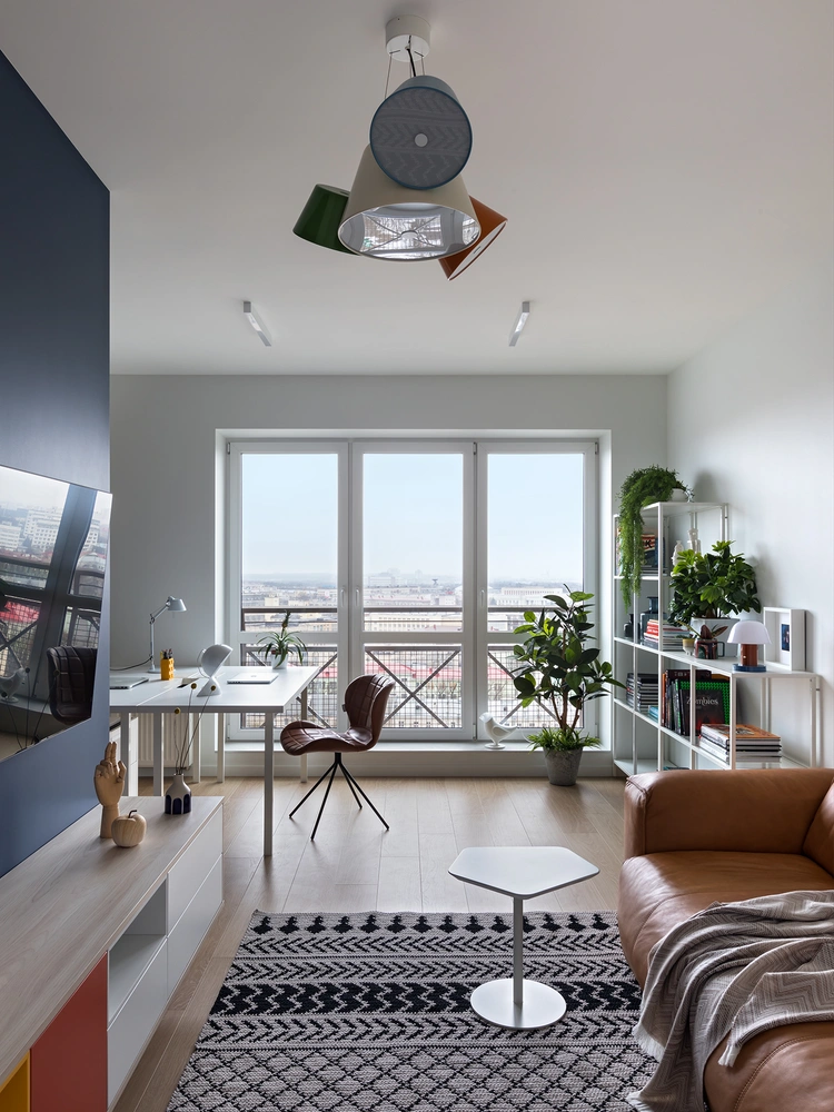 Основная идея проекта: создать функциональное пространство с цветовыми геометрическими блоками, радующее живостью выбранных оттенков