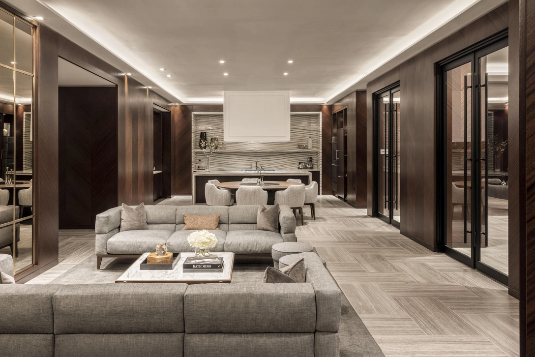 Историческое наследие вступает в диалог с современным дизайном от Giorgetti. Предметы от итальянского бренда использованы в оформлении общественной зоны площадью 2000 кв.м, включая медиазал, игровую комнату, мраморную комнату, которая служит залом ожидания, столовую с винным погребом, фитнес-центр и детскую игровую площадку в стиле «Алисы в стране чудес».