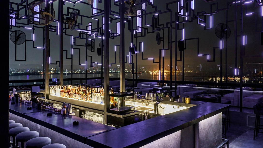 Бар расположен на крыше одного из высотных зданий. «Я решил отказаться от стереотипов, которые используются при создании „типичного бара на крыше“: не делать акценты на подсветке пола, а, напротив, создать световую инсталляцию, устремленную вверх, оживить небо и сделать так, чтобы искусственный свет сливался с огнями большого города».