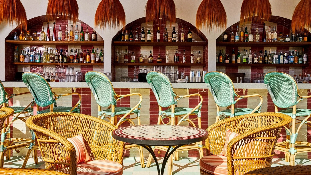 В оформлении отеля используются натуральные материалы, характерные для средиземноморских интерьеров: травертин, цементная плитка, штукатурка. Яркие, насыщенные цвета — изумрудный, бордовый, розовый — наполняют пространство энергией и как нельзя лучше соответствуют буйству красок испанской природы. За стиль ар-деко отвечают оригинальные потолки из кипариса пеки 1920-х годов, которые дизайнеры аккуратно восстановили, и металлические светильники того же времени.
