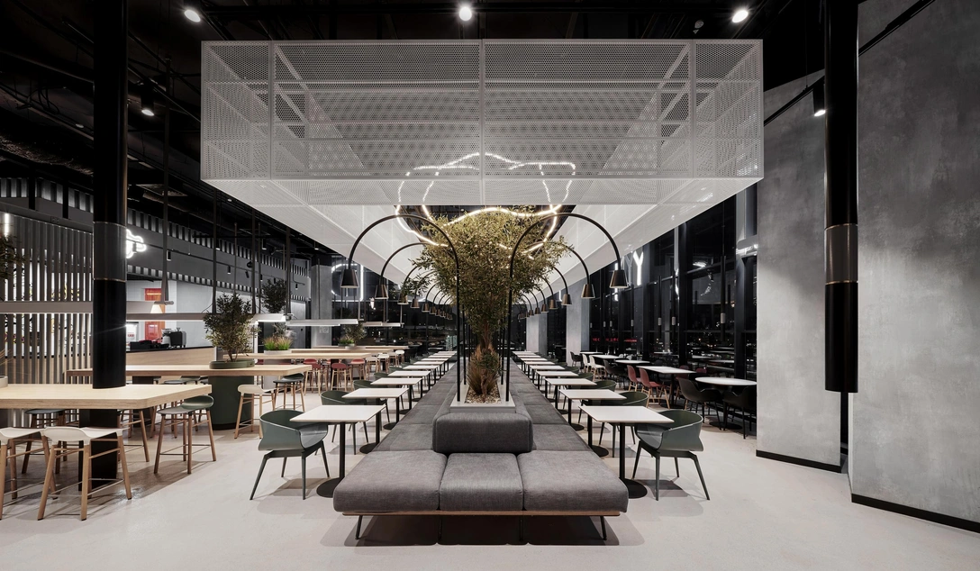«Идея заключалась в том, чтобы создать не очередную обыденную зону фудкорта, а нечто новое, привлекающее дружественной атмосферой и особым дизайном. Мы хотели, чтобы посетитель забыл о том, что находится в торговом центре на периферии города, и почувствовал себя в модном и интересном пространстве».