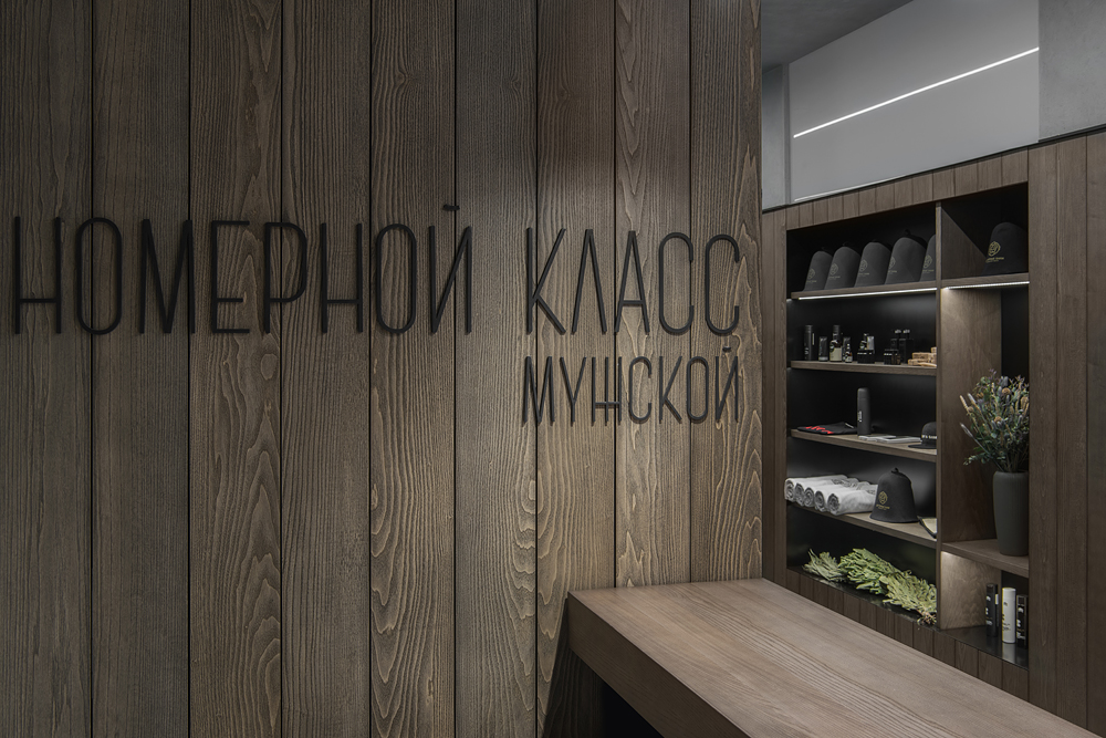 Для Дегтярных бань дизайнеры создали лаконичный «мужской» интерьер, который одновременно получился функциональным и респектабельным. Здесь гостям в равной степени будет комфортно и расслабиться в кругу друзей, и провести встречу с деловыми партнерами. В комнате на 8 человек, например, имеется просторная обеденная зона с большим столом, мягкие диваны со столиками для отдыха, отдельная зона для умывания с раздевалкой и уборная.
