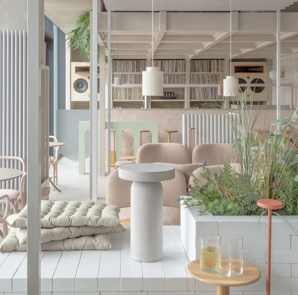 Grzywinski+Pons разработали большую часть мебели для комнат и общественной зоны, где преобладают брутальные. необработанные поверхности. Скамьи для сидения и встроенные вазоны для цветов, к примеру, были изготовлены из местного кирпича, состоящего из переработанного песка и извести.
