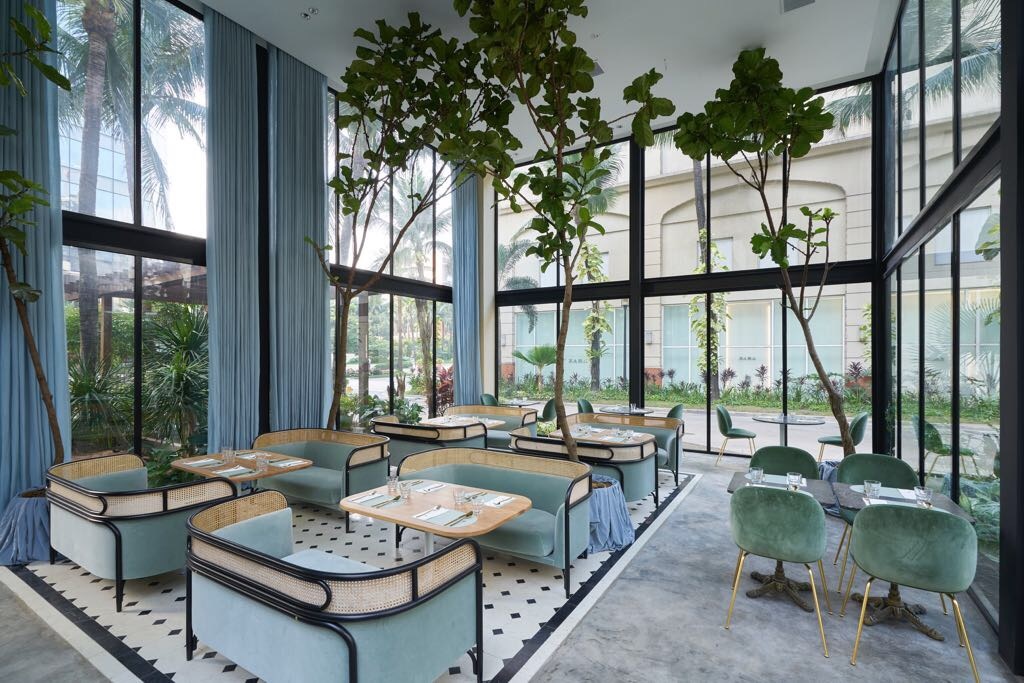 Rосkwell Glasshouse действительно выглядит как стеклянный дом: дизайн заведения навеян оранжереями и современными уличными павильонами и являет собой квинтессенцию стиля GamFratesi. Панорамное остекление, пол, выложенный бетонной и керамической плиткой благородной серой гаммы, мебель нежных мятных оттенков, идеально гармонирующая с живыми растениями (в залах растут настоящие фиговые деревья!) — все это создает спокойную, умиротворяющую атмосферу и настраивает на отдых и позитив. «Когда мы только открылись, я обратил внимание, что сюда заходят люди в спортивной одежде, офисные работники, семьи с детьми — и все отдыхают. И это как раз то, чего мы хотели достичь!», — рассказывает Пинеда.