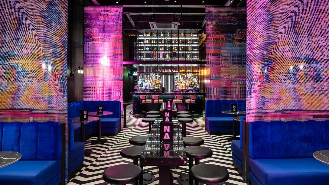 Культура и эстетика 1980-х продолжает вдохновлять деятелей искусства: от музыкантов до модельеров и даже шеф-поваров. К Алексу Клариджу (Alex Claridgе) пришла идея для меню своего нового бара и ресторана, пока он слушал плейлист All Out 80's на Spotify. Почти сразу он отправил его команде дизайн-студии Faber Design, которой доверил работу над проектом. Вот откуда «выросли» все эти контрастные принты c эффектом помех на кассете VHS, неоновые вывески с дерзкими надписями и мебель в стиле постмодернизма. Более того, пройдя по коридорам бара, фанаты Линча испытают дежавю: интерьеры будто бы вырваны из «Синего бархата» — загадочной картины американского режиссера, вышедшей в 1983 году.