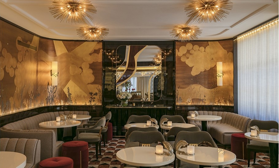 Именно такой подход они продемонстрировали, работая над новым обликом Maison du Caviar. Здесь все — от выбора мебели и светильников до декора стен — выглядит «штучно». В интерьерах много золота и декора, а стены украшены обоями с ручной росписью de Gournay, специально разработанными для этого проекта. Все это, с одной стороны, отсылает к изысканным парижским заведениям начала XX века и эпохе ар-деко, а, с другой стороны, напоминает о русской роскоши и «широте русской души»: в таком антураже хорошо выпить водки и закусить белужьей икрой. Благо и то, и другое в меню Maison du Caviar представлено в изобилии.