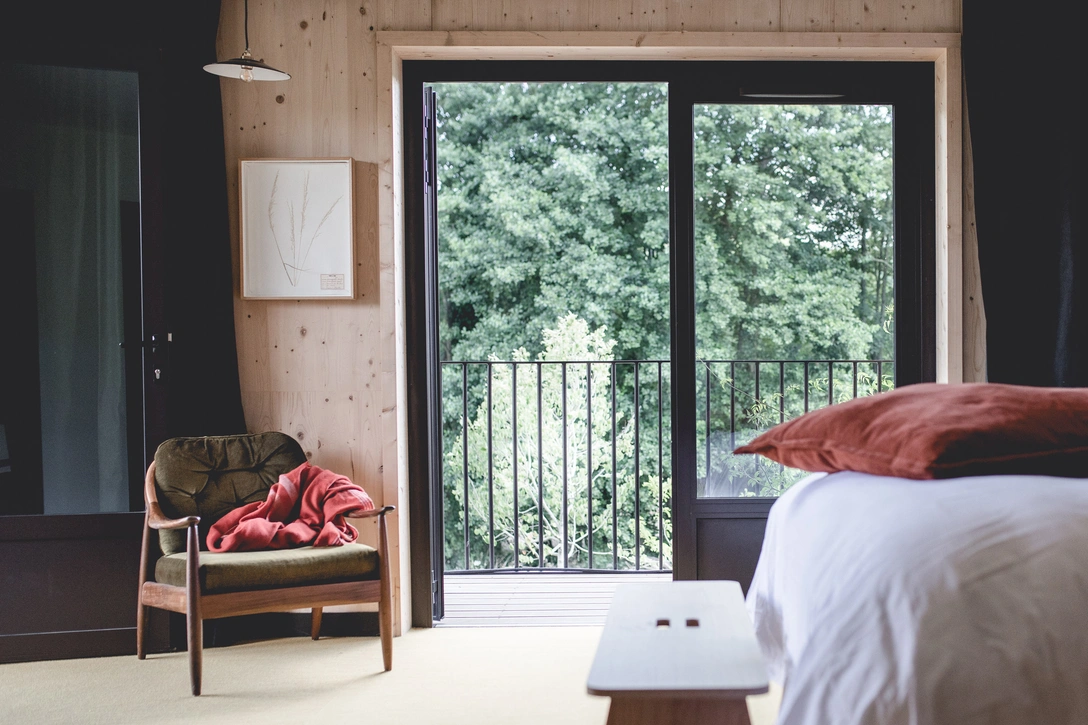 Разработку дизайна отеля хозяева поручили парижской студии Be-poles, попросив команду создать современный интерьер, который чтит богатую историю этого места. Вместо того, чтобы возводить новые конструкции или формировать строгую цветовую схему, студия отреставрировала старые хозяйственные постройки и разделила пространство на номера для гостей, общие зоны, спа и библиотеку.