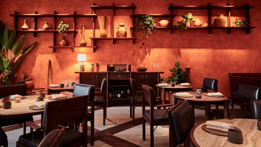 На облик основного зала, стены которого покрыты розовой, масляно-желтой и оранжевой штукатуркой, повлияли красочные работы мексиканского архитектора Луиса Баррагана (Luis Barragán). В центре пространства — открытая кухня, оборудованная тремя островами, в которые встроены духовки, печи и полки для хранения кастрюль и сковородок. В задней части кухни находится специальный гриль, который используется в Мексике и Южной Америке для приготовления лепешек и мяса.