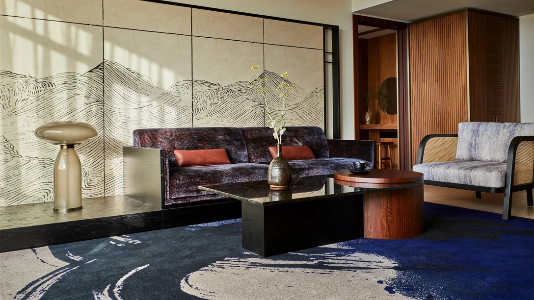 Люксы выполнены в темных тонах, которые создают более торжественную атмосферу. Пространство президентского номера строится вокруг вокруг японского чайного очага, сделанного из грубо вытесанного камня. В ванных также есть традиционная ванна офуро, которая отделена от душа перегородкой, облицованной керамической плиткой.