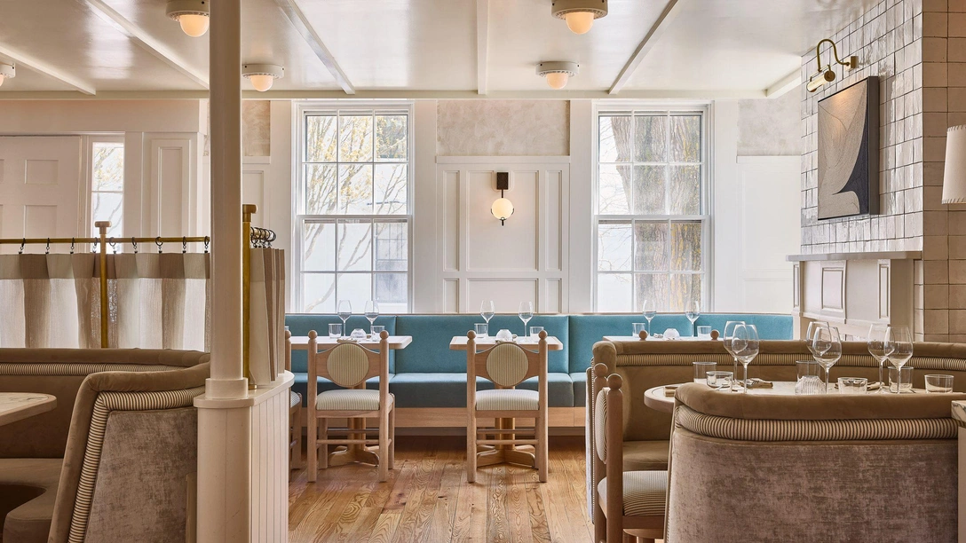 В ресторане Pearl обновили основное пространство, боковые залы и патио. Теплые белые и бежевые оттенки дизайнеры дополнили более прохладным голубым цветом, а глянцевая плитка каминов дала текстуру поверхности стен. Современного вида столы и стулья из белого дуба играют на контрасте с архитектурными деталями колониальной эпохи. Более темные землистые тона выбрали для частных обеденных зон — с креслами из кожи и букле и подборкой винтажной мебели.