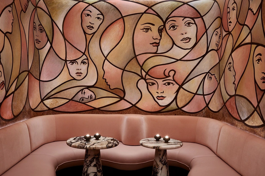 Пространство бара разделено на серию укромных зон, соединенных друг с другом арками с массивными порталами и грудоватым декором в духе бруталистской архитектуры. Они напоминают об истории этого места: отель был построен в 1972 году на месте бывших казарм гренадерского полка британской армии.