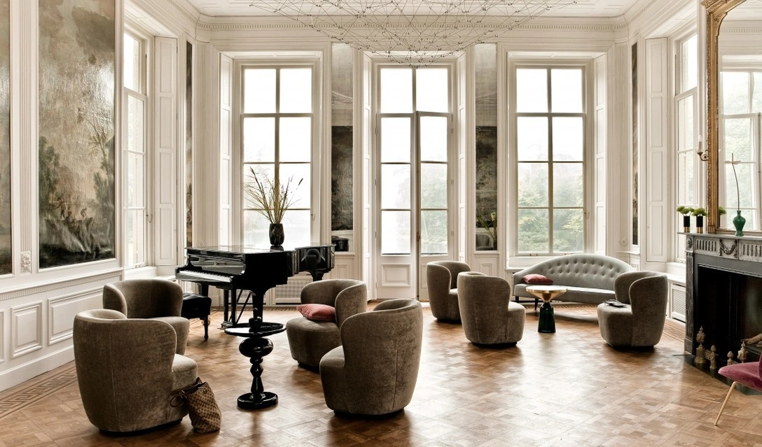 Отель Parc Broekhuizen находится в настоящем замке в стиле эпохи Людовика XVI с изысканными парадными лестницами, высокими потолками с лепниной и окнами от пола до потолка. Концепцию интерьеров в духе mid-century modern придумала голландский дизайнер Джудит ван Мурик (Judith van Mourik). Бархат, итальянский мрамор и латунь дополнили аристократическое величие здание, а трендовые пастельные тона и современное искусство добавили свежие штрихи.