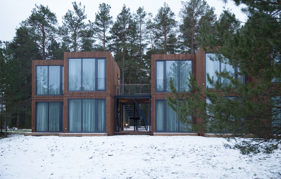 Ставка здесь сделана на экологичность: «Точка на карте. Приозерск» — один из первых отелей в России, созданный с помощью технологии модульного строительства. Благодаря тому, что модули производятся на фабрике, в сосновые леса на побережье Ладоги не вторгается тяжелая техника, и ущерб природе сводится к минимуму. Поддерживают концепцию и материалы, и дизайн-решения: натуральное дерево, панорамные окна с видом на воду из каждого номера, будь то один из 30 «стандартов», отдельно стоящие люксы или номер для людей с ограниченными возможностями.