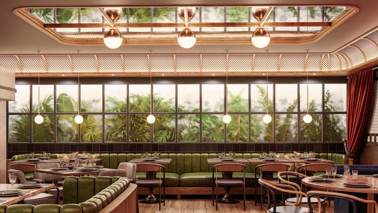 Gran Vía 55 занимает четыре этажа и имеет общую площадь 1300 квадратных метров. Входную зону украшает монументальная дверь XIX века из кованого железа, которая уже с улицы притягивает к себе взгляд прохожих. Интерьерами всех четырех заведений занималась испанская студия Proyecto Singular (мы уже публиковали ранее их проект уютной бургерной в Мадриде).