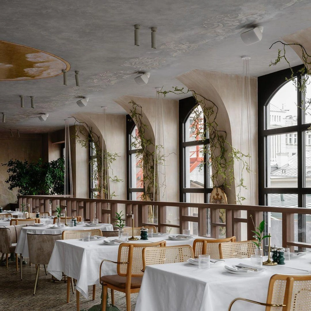 О ее проектах мы писали не раз на страницах myDecor, и уже немного привыкли к лаконичным, иногда даже монохромным пространствам, в котором царит полумрак, много бетона и необычных рукотворных деталей. Но Locanda удивила нас своей светлой, жизнерадостной, поистине итальянской атмосферой: семиметровые арочные окна, светлые залы, плафоны с голубым небом на потолке, фрески и живые растения — вы словно попадаете в настоящее итальянское палаццо и забываете, что находитесь в центре Москвы!