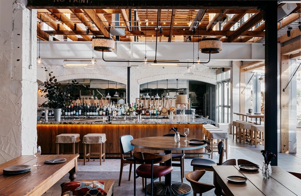 Открытая кирпичная кладка, бетонный пол с мозаичными вставками, индустриального вида светильники напоминают о стилистике лофтов, которую хозяева заведения выбрали для нового места. The Park House Food Merchants рассчитан на 200 посадочных мест. К услугам гостей — коктейльный бар, лаунжи у камина, открытая кухня, где посетители могут наблюдать за работой шефа. Оформлением интерьеров нового ресторана занималась студия Alexander & Co.