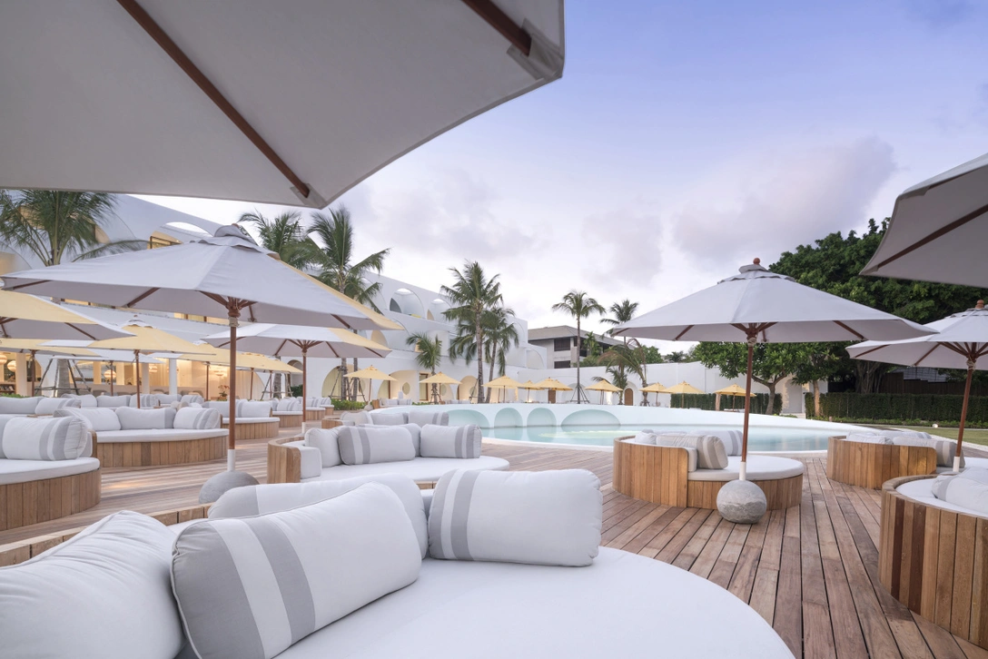 Дизайн пространства вдохновлен сменяющимися фазами луны, и это наиболее заметно в центральном фасаде здания с округлыми оконными проемами. В законченном ранее Beach Wing о полной луне напоминают силуэты светильников, формы ванн, арки и просторный бассейн в центре, в то время как в новой части чаще встречаются полукружия полумесяца.