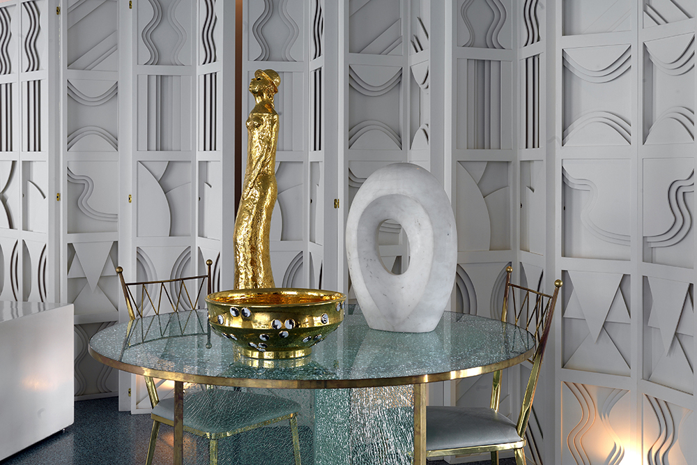 Однако следовать их концепции буквально Келли не стала. Она вознамерилась вернуть отелю былую роскошь, но при этом придать его интерьеру современное звучание. Мебель от Джорджа Нельсона и Исаму Ногучи помогла воссоздать атмосферу середины прошлого века. Специально для этого проекта Келли придумала необычные керамические колонны, напоминающие тотемы и ширмы с геометрическими узорами, которые украсили ресторан Oliverio.