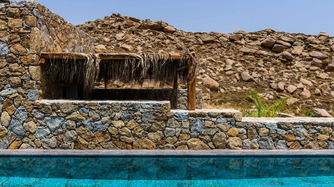 В своем проекте архитекторы Kyriakos Tsolakis Architects стремились подчеркнуть связь отеля с местным ландшафтом. Часть стен комплекса возведена из местного камня, который нашли при раскопках. Внутри также множество природных материалов: травертин, сланец, булыжник, дерево ироко и бронза, потолок в некоторых помещениях сделан из слоев очищенной натуральной ивы.