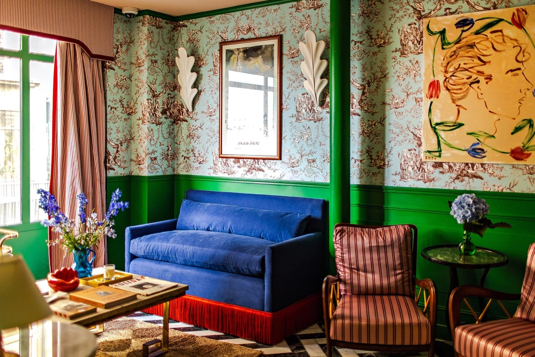 Новый отель Les Deux Gares в 10-м округе Парижа представляет собой яркую комбинацию французского и английского стилей. Он располагается в здании XIX века эпохи Османа между Северным и Восточным вокзалами и представляет собой четвертое — и, пожалуй, самое яркое и необычное, — заведение гостиничной сети. Что неудивительно — ведь над дизайном интерьеров работала восходящая звезда британского дизайна Люк Эдвард Холл (Luke Edward Hall).